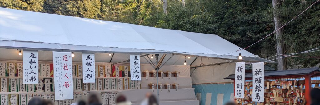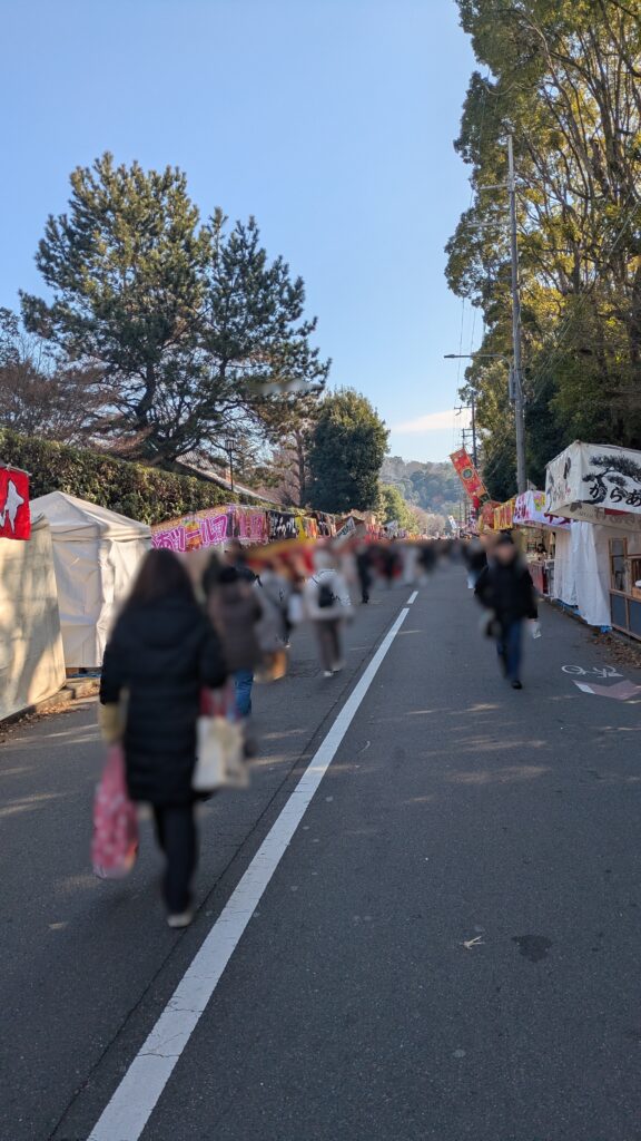 例年約50万人の参拝者が訪れ、境内は多くの露店と厄除祈願やくちなし色の御神札を求める参拝者の人波で埋め尽されます。