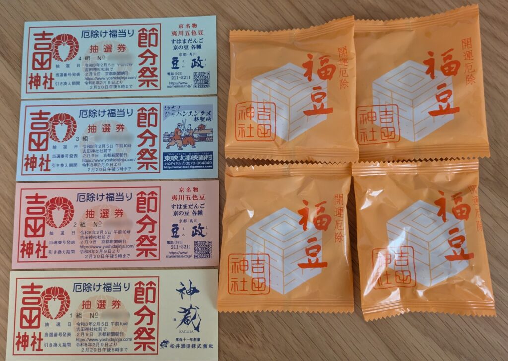 この福豆には「厄除福豆商品」が当たる抽選券が福豆1袋に1枚ついてきます